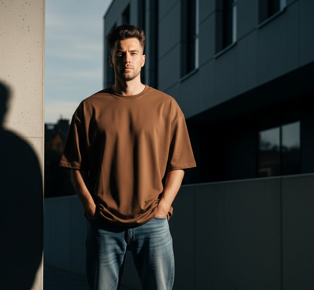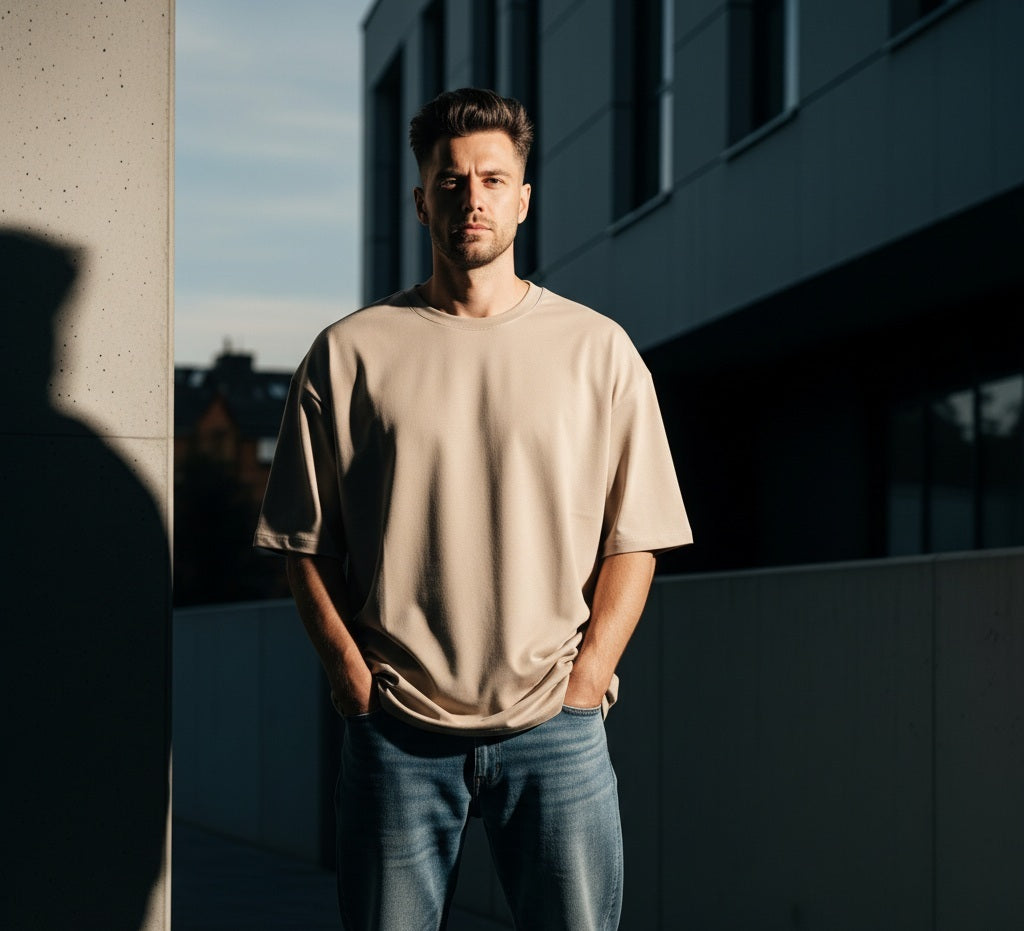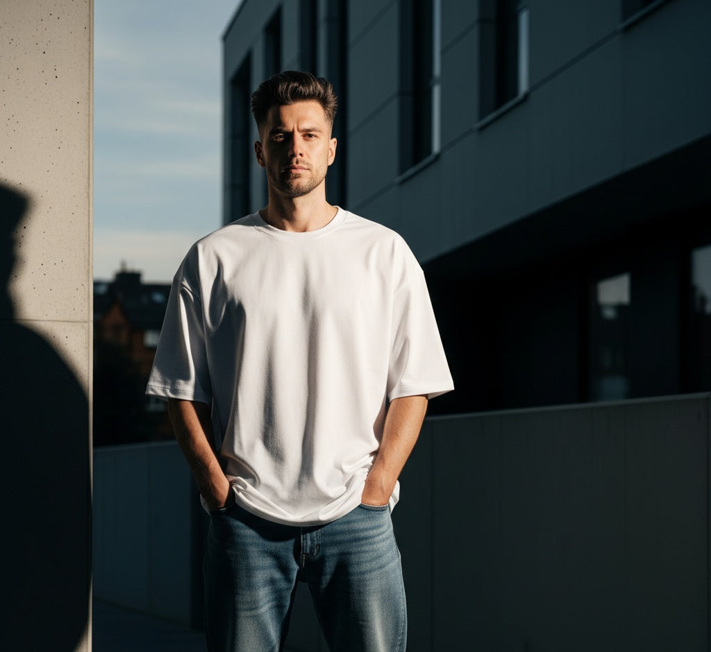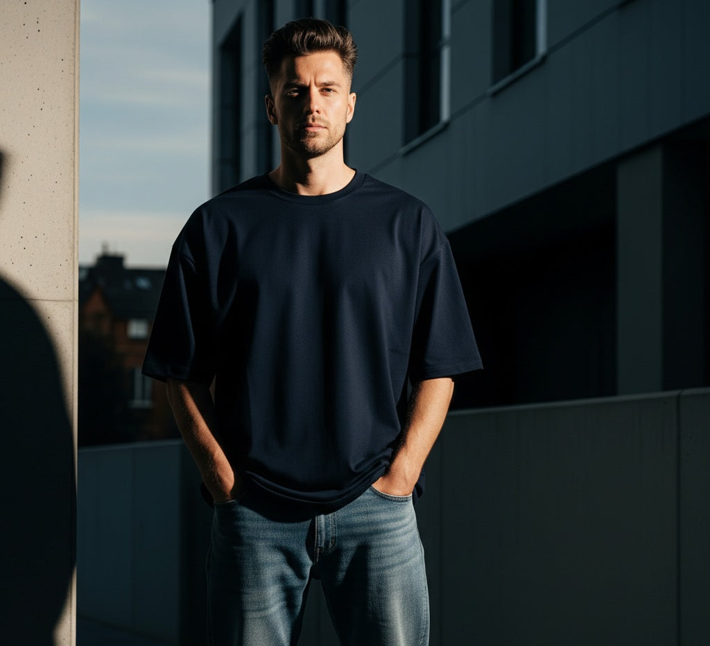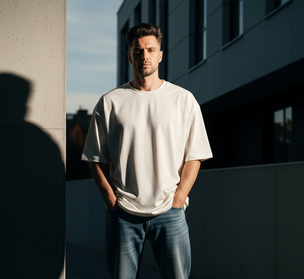 Camiseta Oversized Premium em Algodão com Elastano | Estilo Streetwear Masculino com Caimento Boxy Estruturado