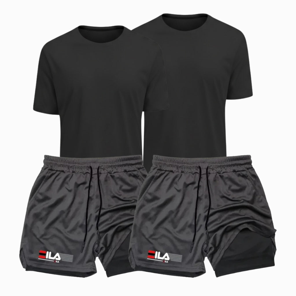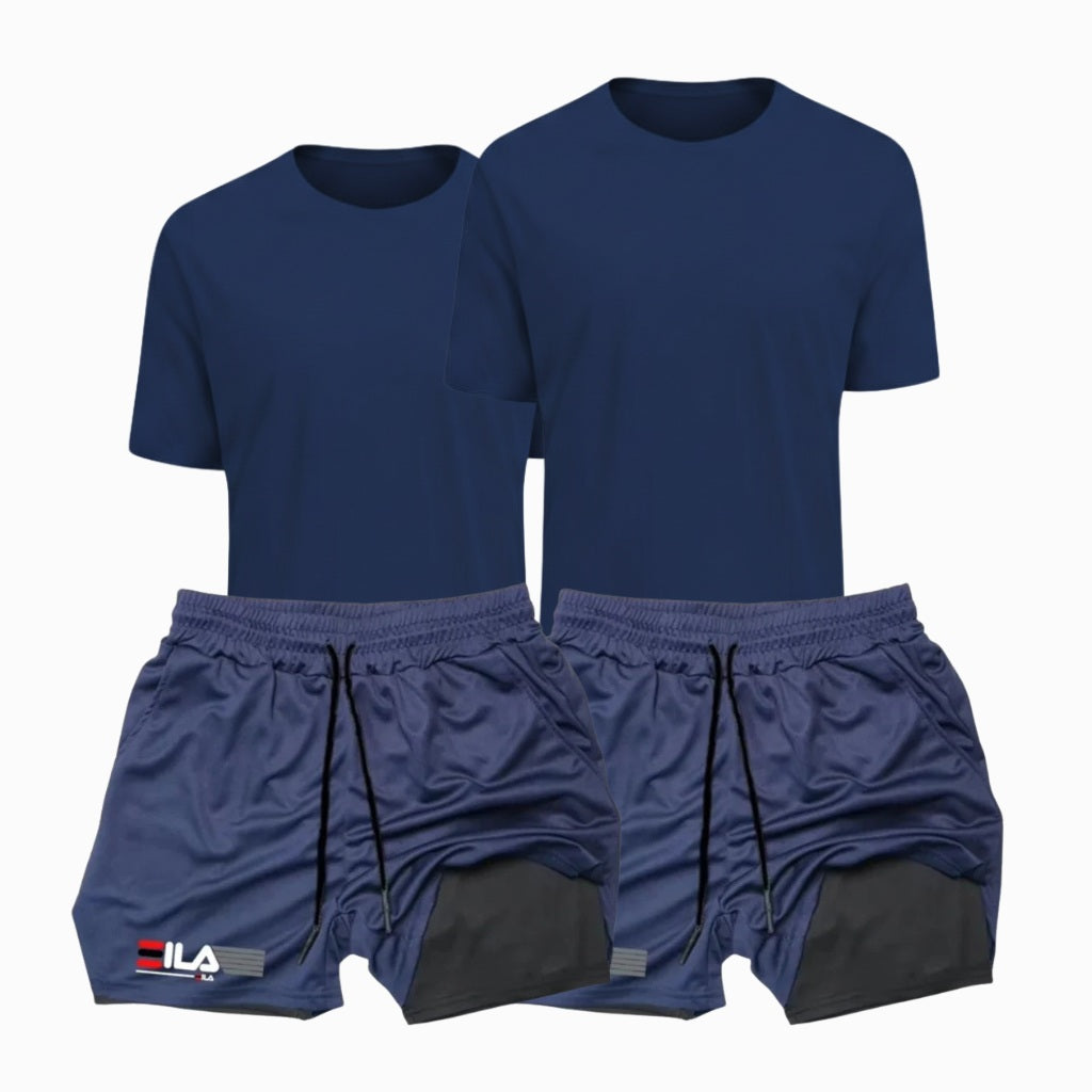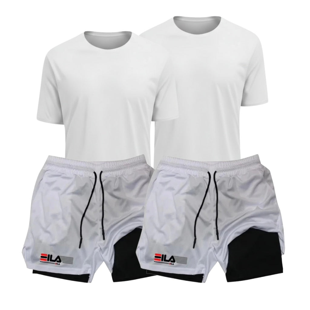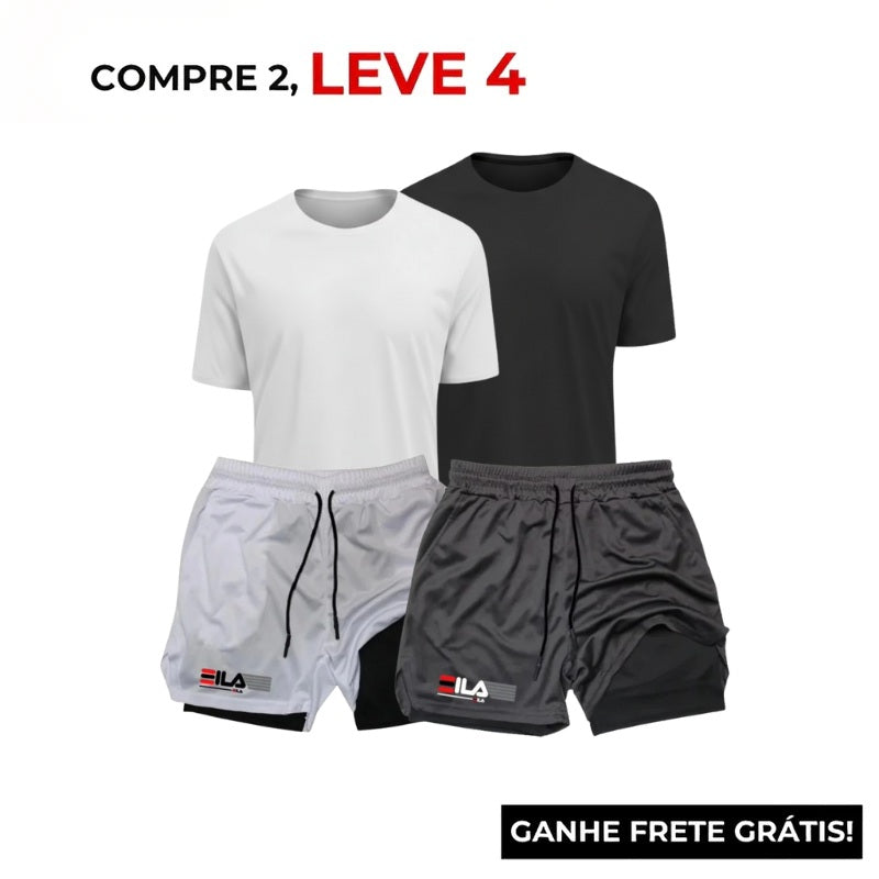 Kit Performance ProFit: 2 Camisetas + 2 Bermudas de Compressão 2 em 1